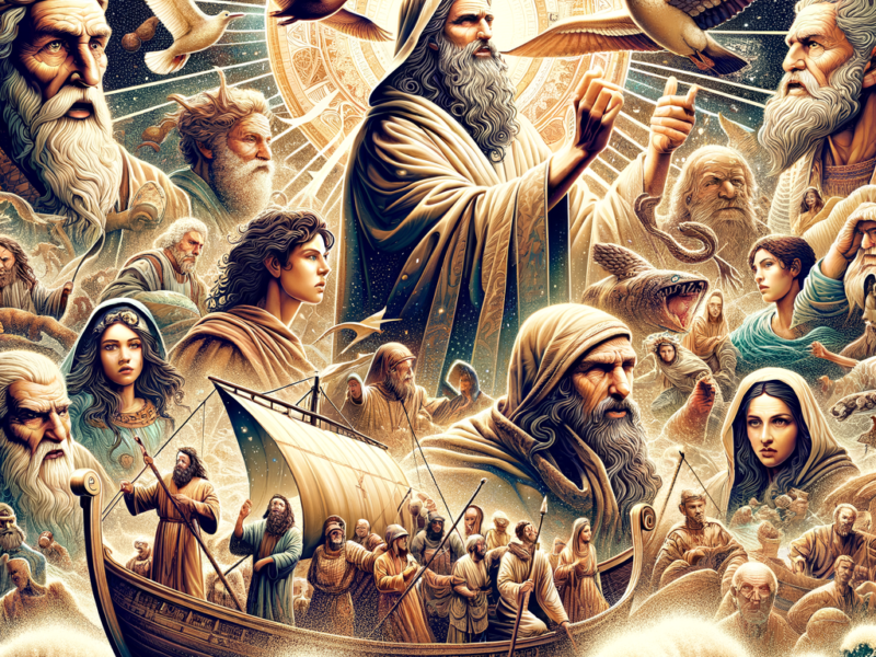 Figura central no relato do dilúvio. Noé é escolhido por sua retidão em um tempo de corrupção generalizada.